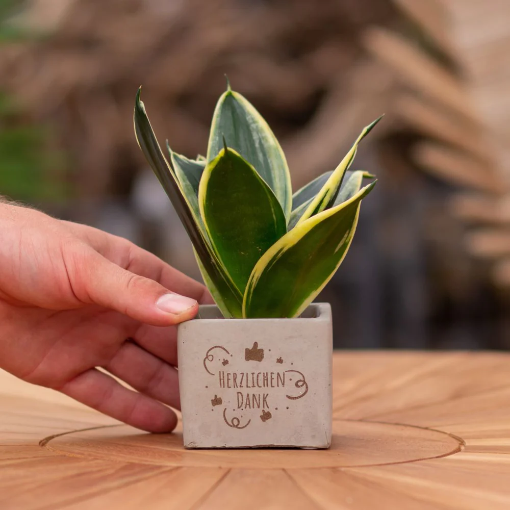 Möchten Sie statt eines Blumenstraußes einmal ein bleibendes, grünes und personalisiertes Geschenk machen? Dann suchen Sie nicht weiter, denn mit unseren Congreet®-Pflanzgefäßen können Sie genau das tun. Das Congreet®-Pflanzgefäß-Konzept wird komplett mit Pflanze geliefert, bereit zum Verschenken oder Versenden. Bringen Sie Ihre Dankbarkeit mit Congreet®-Pflanzgefäßen zum Ausdruck, die mit einer aufrichtigen „Herzlichen Dank”-Botschaft versehen sind.
