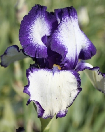 Die Blüten von Iris germanica 'Loop the Loop' sind schön geformt und haben eine lila-weiße Farbe. Iris germanica gibt es in schönen Varianten. Die aufrechten Blütenblätter haben oft eine andere Farbe als die hängenden Blütenblätter. Dadurch entsteht ein schöner Farbkontrast innerhalb einer Blüte. An den unteren Blütenblättern befindet sich der so genannte 'Bart'. Deshalb werden diese Schwertlilien auch 'Bearded Iris' genannt. Iris germanica 'Loop the Loop' ist eine winterharte Staude und wächst gut im Freiland. Die Pflanze hat dicke Rhizome. Diese dicken Wurzeln sollten so schnell wie möglich nach Erhalt flach und fast waagerecht gepflanzt werden. Lockern Sie zunächst den Boden gut auf. Verbessern Sie schwere Gartenerde, indem Sie scharfen Sand untermischen. Erzeugen Sie einen Hügel im Pflanzloch. Legen Sie die dicken Rhizome der Bart-Iris etwa 1 cm unter der Erdoberfläche auf den Erdhügel. Füllen Sie das Loch mit Erde auf und drücken Sie es fest. Sofort nach dem Einpflanzen wässern. Der Pflanzabstand beträgt ca. 25-30 cm. Diese Schwertlilien wachsen und blühen gut an einem Platz in voller Sonne oder im Halbschatten in gut durchlässigem, ziemlich trockenem Boden. Die schwertförmigen, graugrünen Blätter sterben im Spätsommer ab, aber schon im Herbst erscheinen neue Blätter. Decken Sie die Pflanzen im Winter mit einer Schicht Laub oder einigen Zweigen ab. Schneiden Sie im Frühjahr alle Blätter ab. Bald werden wieder neue Triebe erscheinen.