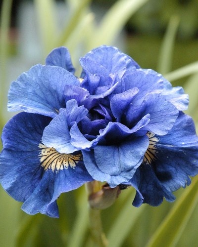 "Die Blüten von Iris sibirica 'Concord Crush' sind wunderschön geformt und haben eine blaue Farbe. Iris sibirica gibt es in schönen Sorten. Die aufrechten Blütenblätter haben meist eine andere Farbe als die hängenden Blütenblätter. Dadurch entsteht ein schöner Farbkontrast innerhalb einer Blüte. Iris sibirica ist eine winterharte Staude und wächst gut im Freiland. Die Pflanze hat dicke Rhizome. Diese dicken Wurzeln sollten so schnell wie möglich nach Erhalt flach und fast waagerecht gepflanzt werden. Lockern Sie zunächst den Boden gut auf. Verbessern Sie schwere Gartenerde, indem Sie scharfen Sand untermischen. Erzeugen Sie einen Hügel im Pflanzloch. Legen Sie die dicken Rhizome der Schwertlilien etwa 1 cm unter der Erdoberfläche auf den Erdhügel. Füllen Sie das Loch mit Erde auf und drücken Sie es fest. Sofort nach dem Einpflanzen gießen. Der Pflanzabstand beträgt ca. 25-30 cm. Diese Schwertlilien wachsen und blühen gut an einem Platz in voller Sonne oder im Halbschatten in gut durchlässigem, ziemlich trockenem Boden. Die schwertförmigen, graugrünen Blätter sterben im Spätsommer ab, aber schon im Herbst erscheinen neue Blätter. Decken Sie die Pflanzen im Winter mit einer Schicht Laub oder einigen Zweigen ab. Schneiden Sie im Frühjahr alle Blätter ab. Bald werden wieder neue Triebe aus dem Boden sprießen.