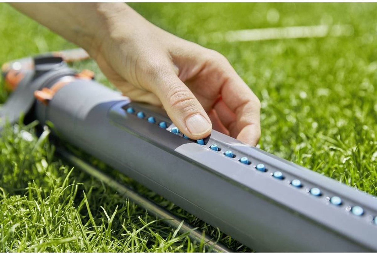 Die Bedienung des AquaZoom L ist einfach und intuitiv. Mit den Schiebereglern können Sie die Reichweite (7-21 Meter), die Sprühbreite (4-17 Meter) und den Wasserdurchfluss nach Ihren Wünschen einstellen. Sie können sogar auf einer Seite bewässern. Mit all diesen Einstellungen können Sie das Wasser genau dort ausbringen, wo Sie es haben möchten.