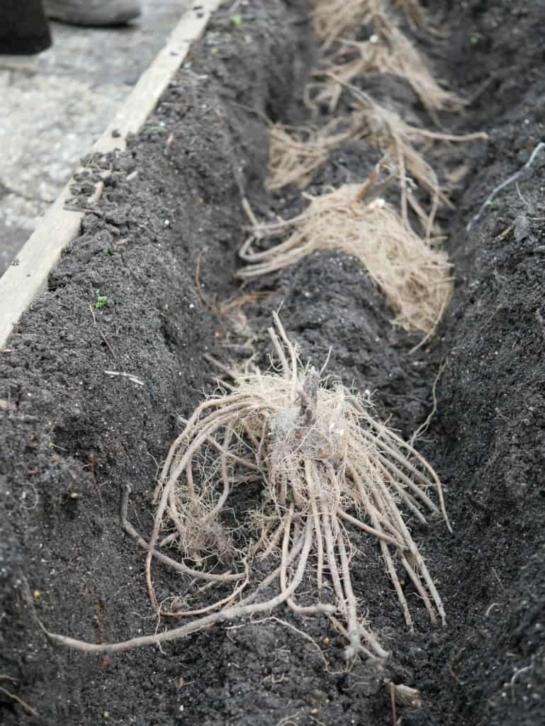 Asparagus 'Backlim' (Weißer Spargel) wird am besten in sandigen Boden gepflanzt. Vor dem Pflanzen den Boden gut auflockern und etwas Dünger in das Pflanzloch streuen. Wenn der Spargel aus dem Boden wächst, brauchen Sie die Triebe nicht mehr mit Erde zu bedecken, um den grünen Spargel zu ernten. Sie können den Spargel im Mai und Juni ernten. Ende Juni sollte man mit der Ernte aufhören, da die Pflanze sonst zu sehr schwächelt und im nächsten Jahr nicht mehr genügend nachwächst. Außerdem ist es wichtig, im Herbst das gelbe Laub zu entfernen.
