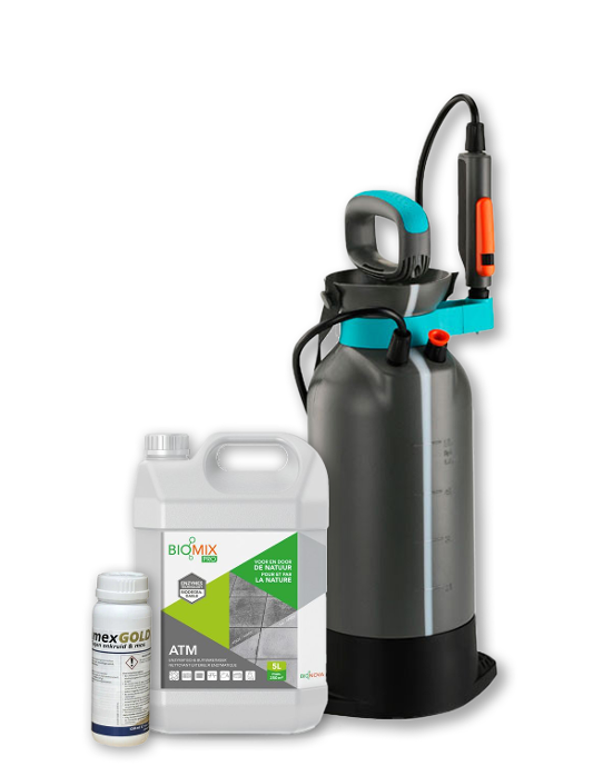 Biomix-ATM ist ein flüssiges biologisches Reinigungsmittel, das speziell dafür entwickelt wurde, Ihren Garten wieder strahlend sauber zu machen. Das Produkt kann sicher auf verschiedenen Oberflächen angewendet werden, darunter Zäune, Hecken, Ziegeldächer, Reetdächer, Fliesen, Grabsteine und Naturstein. Es eignet sich auch für die Reinigung des Inneren von Teichen und Schwimmbecken oder der Außenseite von Wohnwagen.