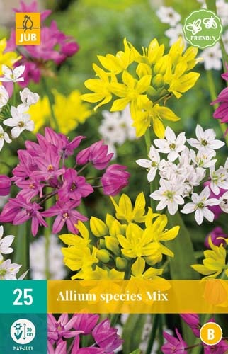 A mixture of different small-flowered Alliums. Plant between perennials or roses or just at the edge of the border. They also combine well with other spring bulbs in a pot on terrace or balcony. Suitable for naturalising. This Allium attracts butterflies and bees during flowering.