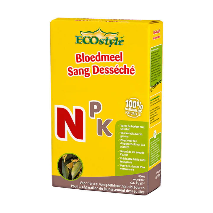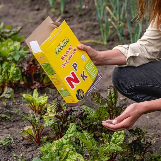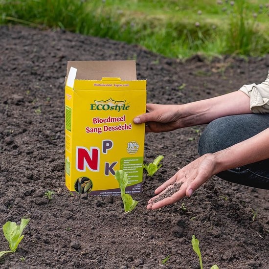 Spread Blood meal over the root area of the plant or the area to be fertilised. Lightly rake in the fertiliser. Watering is not necessary but does speed up the effect. The number of times you fertilise per year depends on the needs of the plant. In addition to Blood meal, ECOstyle has a 100% natural phosphate fertiliser (P) in the form of Bone meal and a 100% natural potassium fertiliser (K) in the form of Vinassekali. Blood meal (added to the compost heap) creates fertile compost.