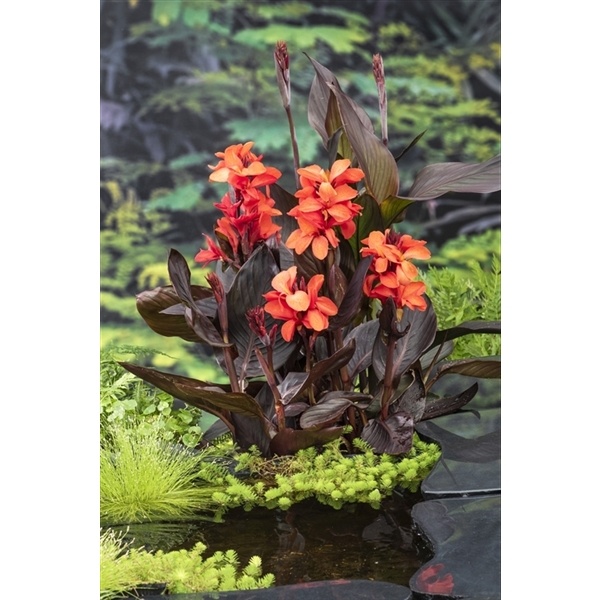 Canna Sol (pot) ‘Happy Wilma’ gives your patio or balcony a tropical look. This variety produces orange flowers that contrast beautifully with the dark foliage. Cannas originate from the tropics. They therefore love a sunny spot. Canna looks great in a spacious flower pot or planter. Take a large pot with holes in the bottom. Cover the bottom with potsherds or a layer of hydro pellets. Put potting soil in the flower pot and set the pot ball of the Canna at the right height. Top up with soil and press firmly. Give plenty of water immediately after planting. Place the flower pot or planter in a spot in full sun. The flowers and large dark leaves of the Canna are indispensable in a border that has a ‘tropical’ character. Provide a sunny spot for these tropical plants to feel at home. Canna bulbs, like dahlias, are very easy to overwinter. After the first night frost, remove the corms from the pot or full ground. Place the Canna tubers in a crate with peat moss or sand. Large Canna tubers can be divided immediately. Store the Canna tubers in a frost-free room. Next spring (after the last night frost) you can plant them again.