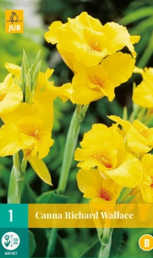 "Canna 'Richard Wallace' gives your patio or balcony a tropical look. This variety produces yellow flowers. Cannas originate from the tropics. They therefore love a sunny spot. Canna looks great in a spacious flower pot or planter. Take a large pot with holes in the bottom. Cover the bottom with potsherds or a layer of hydro pellets. Put potting soil in the flower pot and set the pot ball of the Canna at the right height. Top up with soil and press firmly. Give plenty of water immediately after planting. Place the flower pot or planter in a spot in full sun. The flowers and large leaves of the Canna are indispensable in a border that has a 'tropical' character. Provide a sunny spot for these tropical plants to feel at home. Canna bulbs, like dahlias, are very easy to overwinter. After the first night frost, remove the corms from the pot or full ground. Place the Canna tubers in a crate with peat moss or sand. Large Canna tubers can be divided immediately. Store the Canna tubers in a frost-free room. Next spring (after the last night frost) you can plant them again."