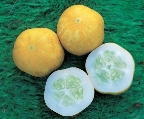 When ripe, the Lemon Apple cucumber takes on the shape of a yellow apple. The flavour is slightly sweet and mild and very suitable for raw salads.
