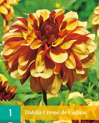 The large-flowered, decorative dahlia 'Creme de Cognac' is a rewarding summer bloomer that will give you months of pleasure. Dahlia 'Creme de Cognac' flowers all summer from July until the first night frost. Dahlia 'Creme de Cognac' grows about 80-90 cm high. Sometimes it is necessary to support the flower stems. Dahlia tubers can be planted in spring. Dahlia 'Creme de Cognac' is sensitive to frost, so beware of late night frosts. Dig a spacious planting hole, loosen the soil and fill the planting hole with good potting soil. Carefully place the tubers in the planting hole and cover with 3-5 cm. of soil. The planting distance of dahlia tubers is 30-60 cm. After planting, water the tubers immediately. Dahlias flower most profusely in full sun. After flowering, store the tubers in a frost-free place and you will enjoy them for years. Dahlia 'Creme de Cognac' combines well with perennials and other dahlia species. The yellow and red flowers are real eye-catchers in the border. Dahlia 'Creme de Cognac' is also an excellent cut flower and keeps well in the vase. The best time to cut dahlias is early in the day. Immediately put the stems in lukewarm water with cut flower food.