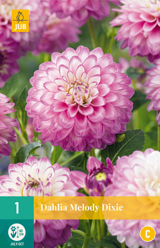 The large-flowered, cactus dahlia Melody Dixie is a rewarding summer bloomer that will give you months of pleasure. Dahlia Melody Dixie blooms all summer from July until the first night frost. Dahlia Melody Dixie grows to about 60 cm. high. This dahlia is therefore also well suited for planting in pots on terrace or balcony. Dahlia tubers can be planted in spring. Dahlia Melody Dixie is sensitive to frost, so beware of late night frosts. Dig a generous planting hole, loosen the soil and fill the planting hole with good potting soil. Carefully place the tubers in the planting hole and cover with 3-5 cm. of soil. The planting distance of the tubers is 30-60 cm. After planting, water the tubers immediately. Dahlias flower most profusely in full sun. After flowering, store the tubers in a frost-free place and you will enjoy them for many years. Dahlia Melody Dixie combines well with perennials and other dahlia varieties. The pink flowers are real eye-catchers in the border. Dahlia Melody Dixie is also an excellent cut flower and keeps well in the vase. The best time to cut dahlias is early in the day. Place the stems directly in lukewarm water with cut flower food.