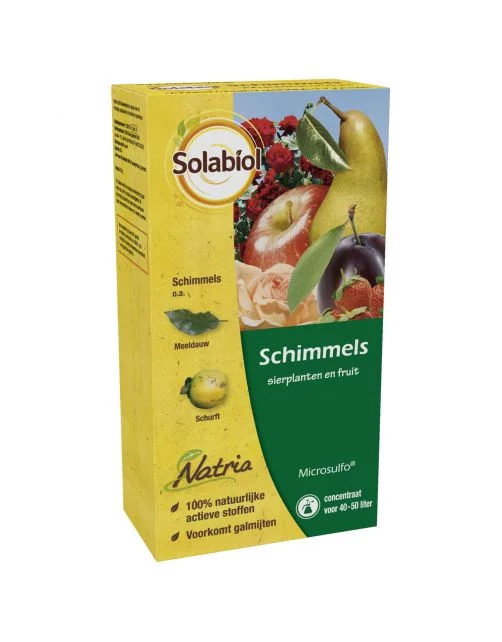 Solabiol Microsulfo spray sulphur concentrate is a natural fungicide. Fungi against which microsulfo works include scab, mildew and hail blight. The spray sulphur pack contains 200 grams of concentrate with which you can make about 40-50 litres of pesticide. The fungicide contains 100% natural active ingredients and is thus suitable for organic gardening of ornamental plants and fruits.