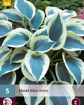 Hosta (heart lily) 'Blue Ivory' is a popular plant. This is mainly due to its decorative leaves. This plant is very suitable for planting in a spacious flower pot. The well-shaped, oval to heart-shaped leaves are a striking blue-green with white. In summer, white flowers appear along the flower stalks. The flowers are above the leaves and give the plant extra ornamental value in summer.Hosta 'Blue Ivory' is a beautiful leafy plant that will do well in a flower pot or simply in the ground. This Hosta likes a location with semi-shade to shade.Water your Hosta 'Blue Ivory' regularly, the pot ball should not dry out. Dry soil is poorly tolerated by the heart lily. Cut away the dead flower stems at the end of the flowering period. The heart lily is hardy. Remove dead leaves in spring and you will soon see the 'noses' of new shoots above ground.Hostas also look great in the border between flowering perennials such as Hemerocallis and Astilbes.