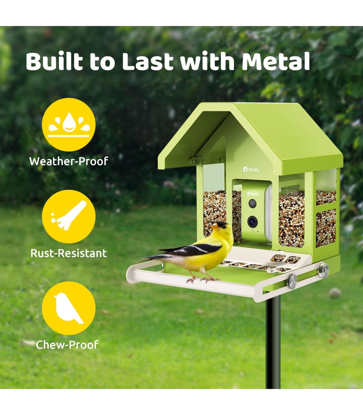 Birdfy Metal Bird Feeder with Built-in Solar Panel, AI 7 days free