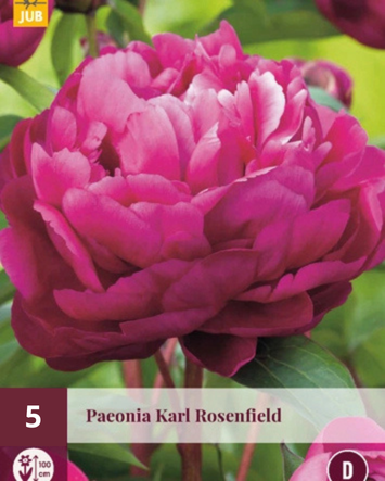 The large-flowered paeonia 'Karl Rosenfield' is a grateful summer bloomer that flowers in the months of May-June. Paeonia 'Karl Rosenfield' grows about 90-100 cm tall. Sometimes it is necessary to support the flower stalks. Paeonia bulbs can be planted in spring. Dig a spacious planting hole, loosen the soil and fill the planting hole with good potting soil. Carefully place the tubers in the planting hole and cover with 3-5 cm. of soil. The planting distance of the tubers is 30-60 cm. After planting, water the tubers immediately. Paeonia bloom most profusely in full sun. The pinkish-red, double flowers are real eye-catchers in the border. Paeonia 'Karl Rosenfield' is also an excellent cut flower and long-lasting in the vase. The best time to cut paeonia is early in the day. Immediately put the stems in lukewarm water with cut flower food.