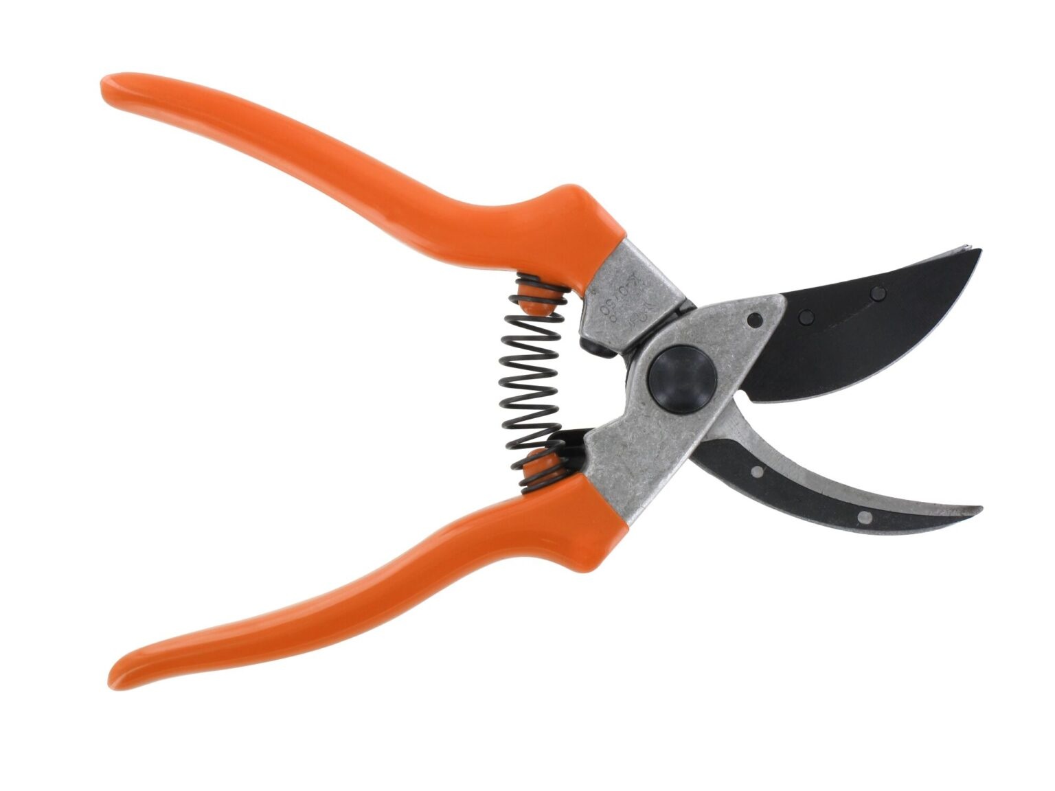 These unique pruning shears (Cut and Hold) are designed to grip the cut part immediately, so it does not fall to the ground. This is particularly suitable for pruning or harvesting roses. The aluminium shears feature an open spring to prevent dirt from penetrating the spring. To minimise friction, the cutting blade has a Teflon coating. These Cut and Hold shears can handle branches up to a maximum of 7mm. The top blade also has a cut-out for cutting wire. Ideal for the florist.