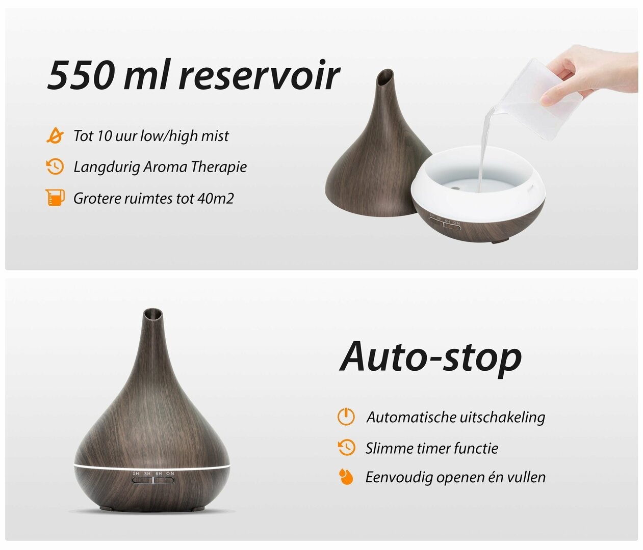 Aroma Diffuser - Lotus Pro - Dark Wood met Led Verlichting - Garden Select