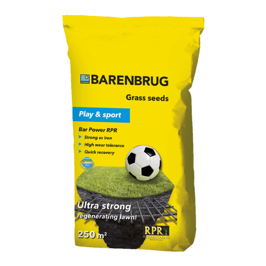 Met Barenbrug Bar Power RPR wordt voor het eerst sterkte en snelheid tot het uiterste geduwd. Nooit meer lang wachten op een mooie en vooral groene grasmat. De zode van het gras is sterk doordat het zo dicht groeit. Hierdoor kan het gras al snel intensief betreden worden. Normaal gesproken worden veldbeemdgrassen voor de sterkte en Engels raaigrassen voor de snelheid gebruikt. Hierdoor heb je snel een grasmat, maar wel ten koste van de betredingstolerantie. Bar Power combineert het beste van beide werelden in het RPR-mengsel. Snel en sterk gras, wat wil een mens nog meer?