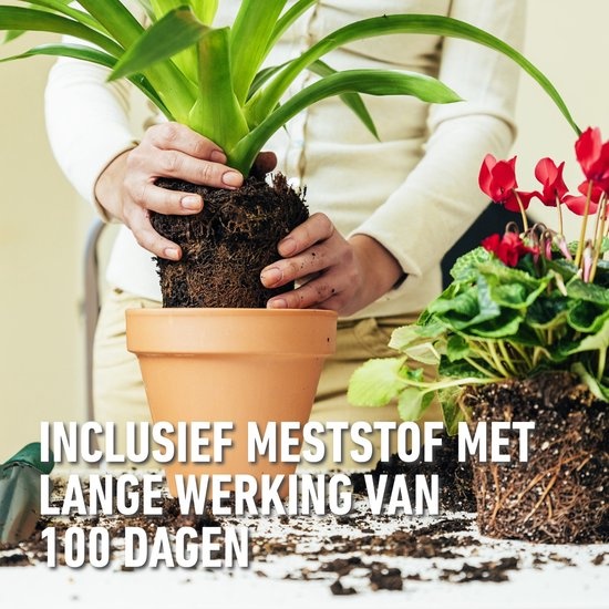 Kwaliteitspotgrond met 100 dagen meststof voor alle groene en bloeiende kamerplanten