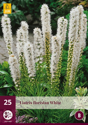 De Liatris spicata 'Floristan White' is een mooie witte plant die ook wel de prachtkaars wordt genoemd. Plant ze op een mooie zonnige plaats in de tuin op een diepte van 10 cm. De Liatris spicata 'Floristan White' wordt ongeveer 80 cm. Hoog. De bloemen kunnen ook als snijbloem gebruikt worden.