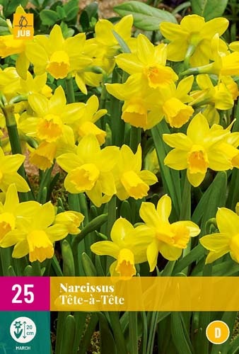 Dit is waarschijnlijk de meest populaire Narcis die er is. Deze gele, laagblijvende Narcis is meerbloemig. Tete-a-Tete bloeit uitbundig vroeg in het voorjaar en is goed te combineren met grootbloemige Crocussen, Scilla en Chionodoxa. Het is een zeer geschikte Narcis om te laten verwilderen. Tete-a-Tete is mooi in de border maar ook in potten op terras of balkon.
