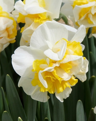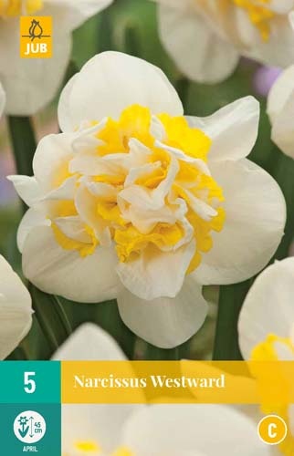 Dubbele Narcis Westward met een mooie kleurencombinatie van geel met creme-wit. Het is een goede Narcis om te laten verwilderen. Westward is een blikvanger in de border maar ook mooi in potten op terras of balkon. Leuk om te combineren met Muscari, Hyacinten en Tulpen.