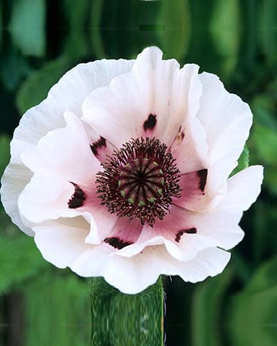 De papaver 'Perry's White' is een dankbare zomerbloeier die door zijn wit met paarse kleur mooi te combineren is in de vaste planten border. De papaver bloeit het beste in een zandgrond of lichte kleigrond. De beste locatie is een plaats uit de wind in verband met de dunne bloembladeren. Na de bloei vormen de bloemen zaaddozen, deze kunt u het beste verwijderen zodat de papaver nogmaals kan bloeien.