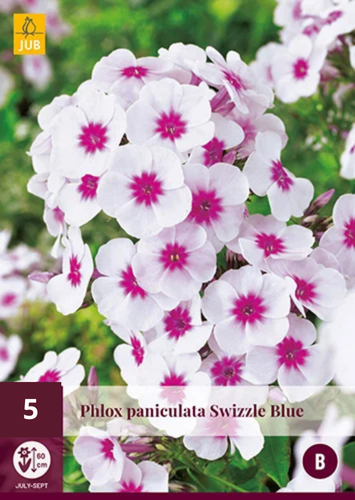 Phlox paniculata Red Riding Hood is een fraaie selectie voor de tuin met groen-witte bloemen. De bloemen zijn gedraaid in de knop, ingedeeld in vijf kroonblaadjes en een gaatje in het midden. De bloemen verspreiden een verfijnde geur en zijn aantrekkelijk voor vlinders. Phlox heeft ook wel de Nederlandse naam vlambloem. Hoogte 70-80 cm. Phlox paniculata Red Riding Hood is een vaste plant die het best in de volle grond groeit. Graaf een ruim plantgat en maak de grond goed los. Verbeter arme tuingrond door er compost en koemestkorrels door te mengen. Zet de kluit van Phlox op de juiste hoogte in het plantgat. De bovenkant van de kluit moet net iets onder het grondniveau komen. Vul het plantgat met aarde en druk stevig aan. Geef na het planten direct water. Phlox Red Riding Hood groeit en bloeit goed op een plek in de volle zon of halfschaduw en is tevens een mooie snijbloem. Voor de winter sterven de stengels bovengronds af. Dek de planten s winters af met een laagje afgevallen blad. Geef in het vroege voorjaar tuinmest. Knip in het voorjaar al het blad. Al snel zullen er weer nieuwe scheutjes boven de grond komen.