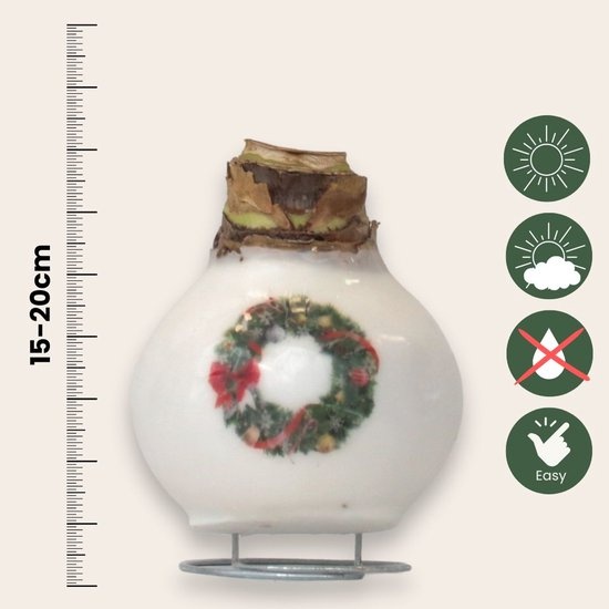 Breng de feestdagen tot leven met de Amaryllis! De elegante rode bloemen zorgen voor een stijlvolle en warme uitstraling in huis. De bollen hebben een porseleinwitte waxlaag en zijn versierd met feestelijke prints van kerstbellen en een krans. Met een bloeitijd van 3 tot 6 weken geniet je wekenlang van hun prachtige bloemen. Een sfeervol en origineel cadeau dat perfect past bij de magie van de feestdagen!