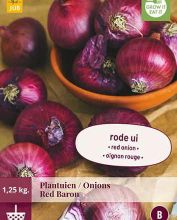 Plantuien Red Baron groeit uit tot een dieprode ui met een vrij pittige smaak. Planten vanaf april tot half mei. Oogsten vanaf juli - augustus. Deze ui heeft een relatief hoge opbrengst en is goed bewaarbaar. Daarnaast is ‘Red Baron’ ook geschikt om te bossen; een veelzijdige ui dus.